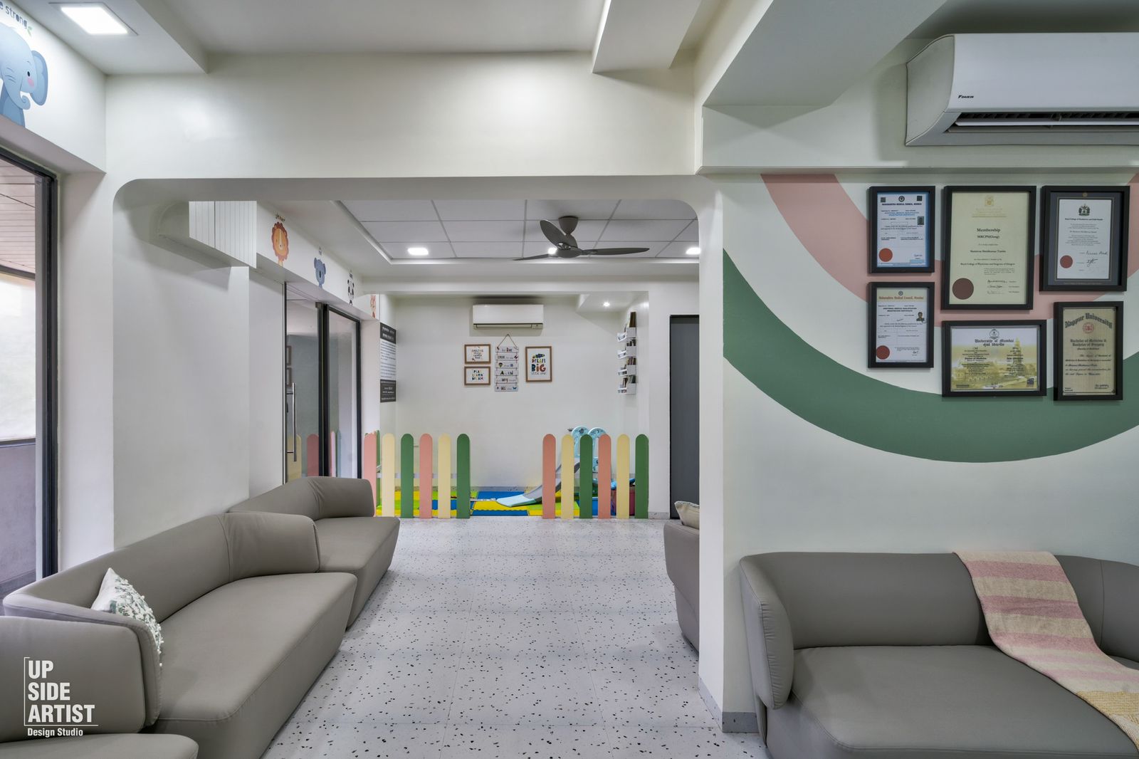 The Clinics atmosphere is designed in such a way that keep kids and baby happy and relaxed which in turn facilitates in the speedy recovery and healthy growth & development of kids.